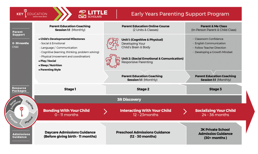 - Stage-by-Stage Admissions Roadmap: A clear timeline from Daycare → Preschool → Private School, plus school-matching advice and application execution (forms, documents, school communication).