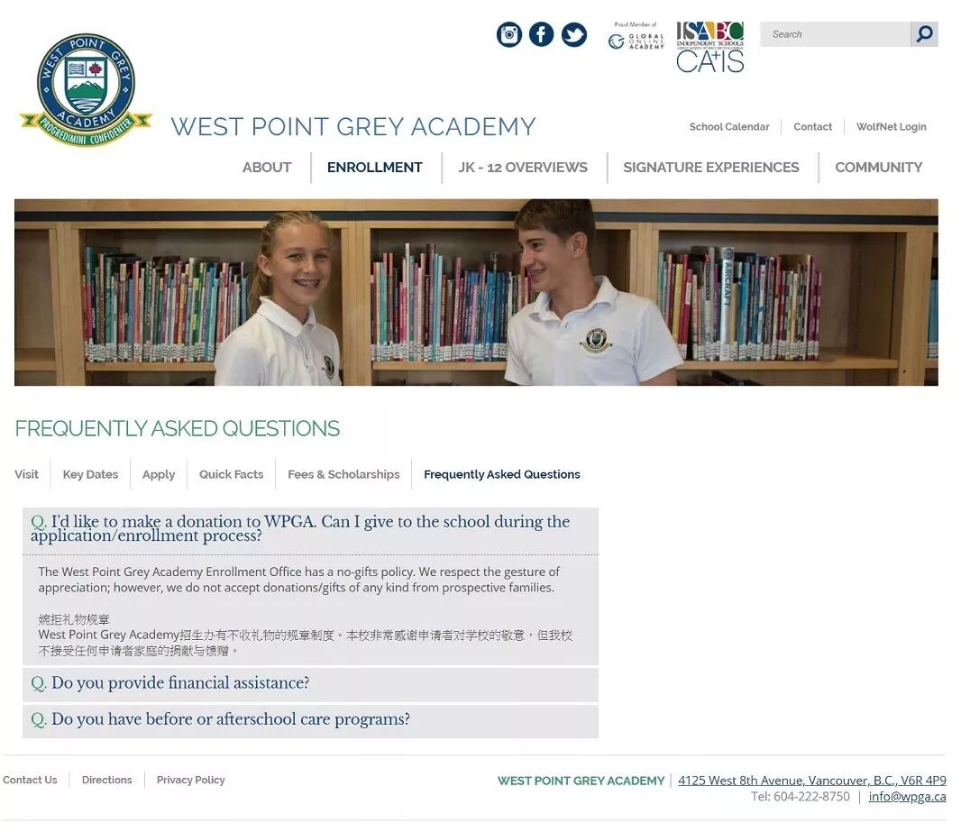 要求学校: York House School / Stratford Hall / Collingwood (JS) / Vancouver College